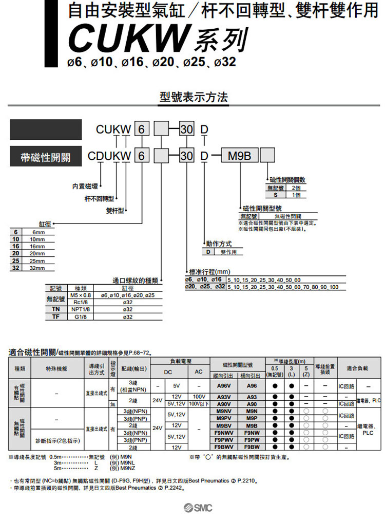CUKW6,CUKW10,CUKW16,CUKW20,CUKW25,CUKW32,CDUKW6,CDUKW10,CDUKW16,CDUKW20,CDUKW25,CDUKW32,SMC自由安裝型氣缸