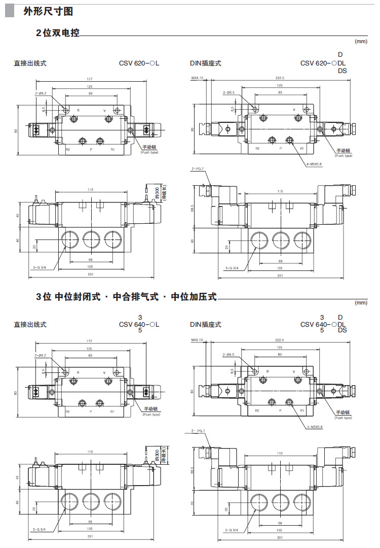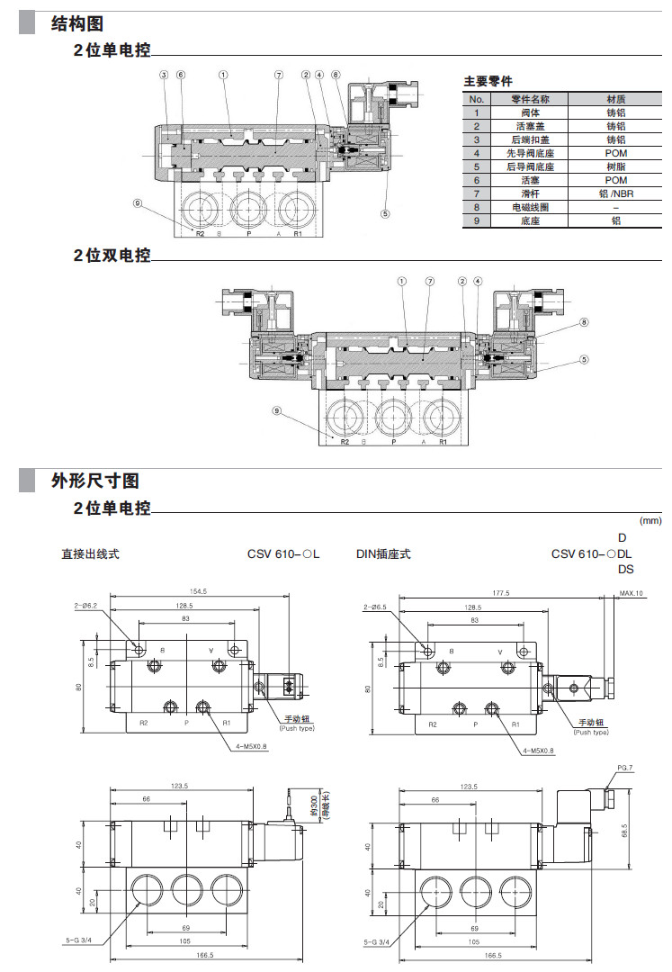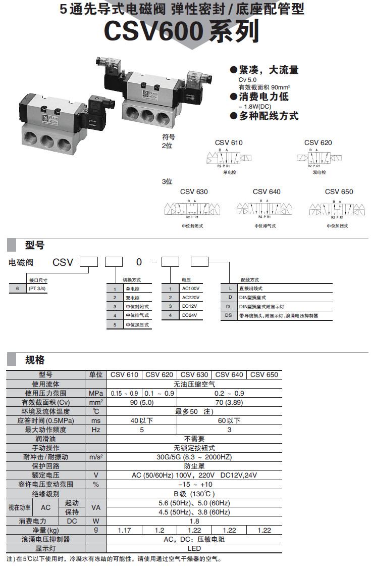 CSV610-1L,CSV620-2L,CSV640-1D,CSV650-2D,CSV630-4DL,CSV640-1DS,5通先導(dǎo)式電磁閥