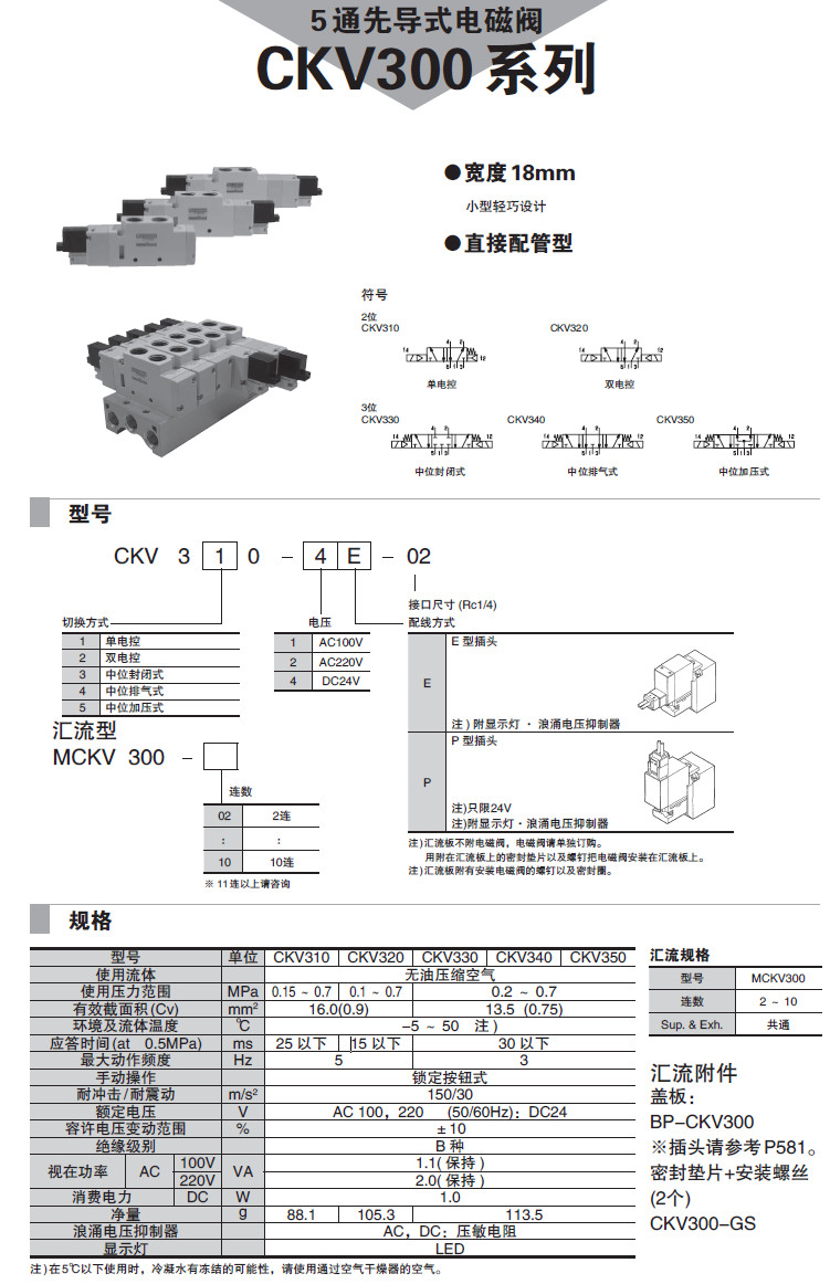 CKV310-1E,CKV320-2E,CKV330-4E,CKV340-4P,CKV350-1E,5通先導(dǎo)式電磁閥