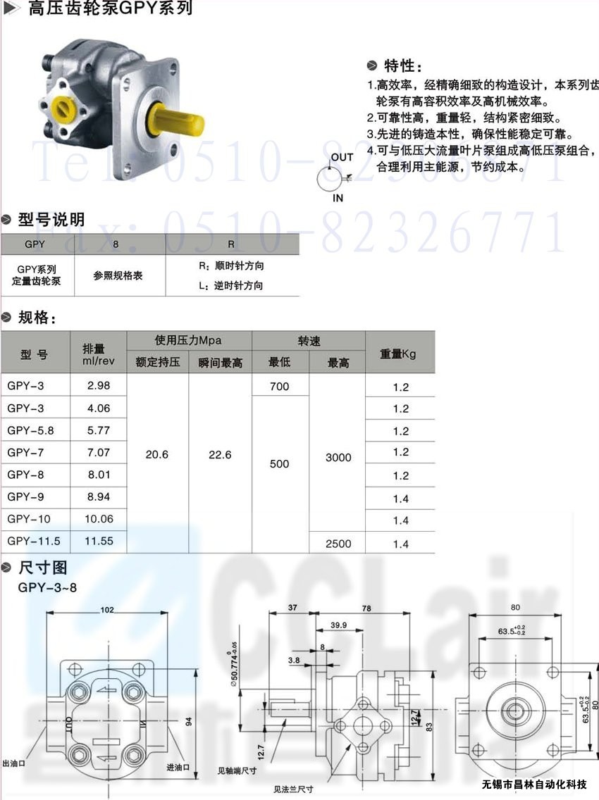 GPY-3,GPY-5.8,GPY-7,GPY-8,高壓齒輪泵