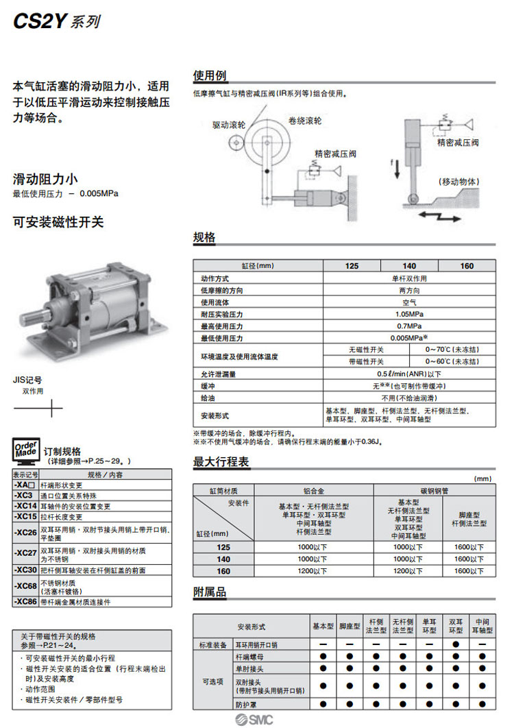 CDS2YB125-300,CDS2YL125-300,CDS2YF125-300,CDS2YG125-300,CDS2YC125-300,CDS2YD125-300,CDS2YT125-300,SMC平穩(wěn)運動型氣缸
