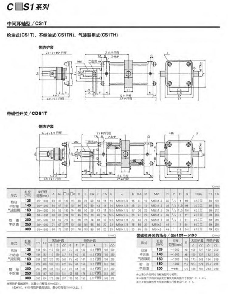 CDS1B125-300,CDS1L125-300,CDS1F125-300,CDS1G125-300,CDS1C125-300,CDS1D125-300,CDS1T125-300,SMC帶磁性開關(guān)氣缸