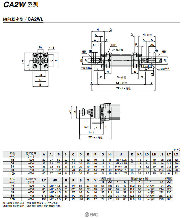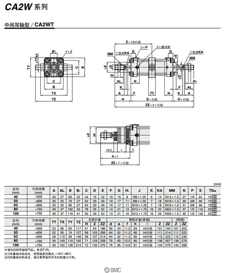 CA2WL80-300,CA2WL80-350,CA2WL80-400,CA2WL80-450,CA2WL80-500,CA2WL100-250,CA2WT100-600,CA2WT100-700,