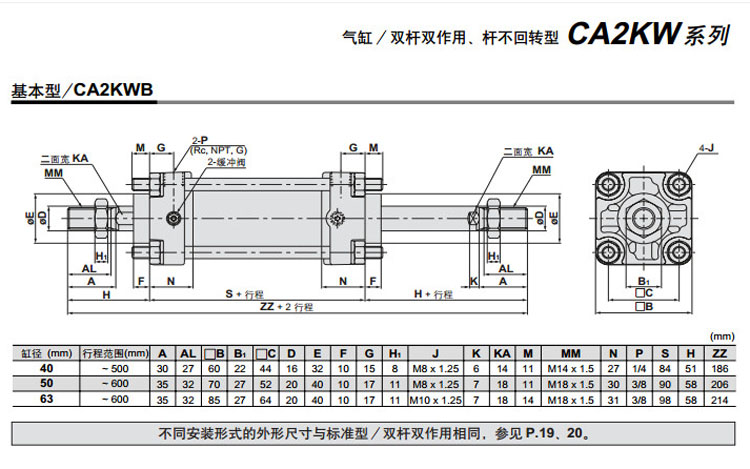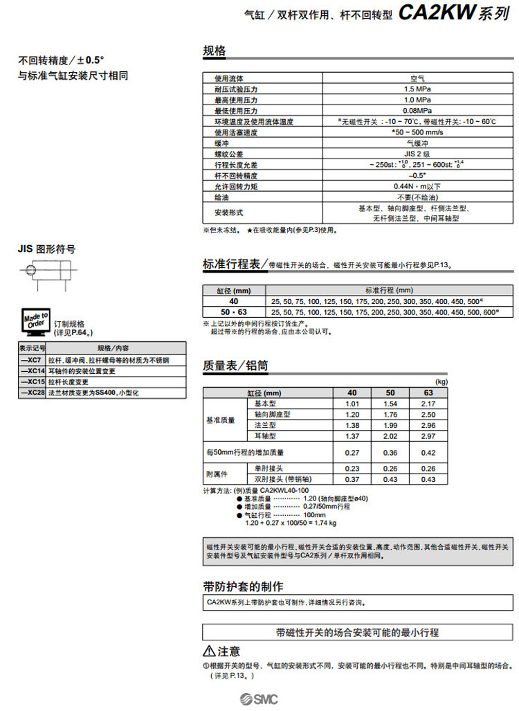 CA2KWG40-150,CA2KWG50-150,CA2KWG63-150,CA2KWT40-150,CA2KWT50-150,CA2KWT63-150,CA2KWB40-175,CA2KWB50-175,CA2KWB63-175,