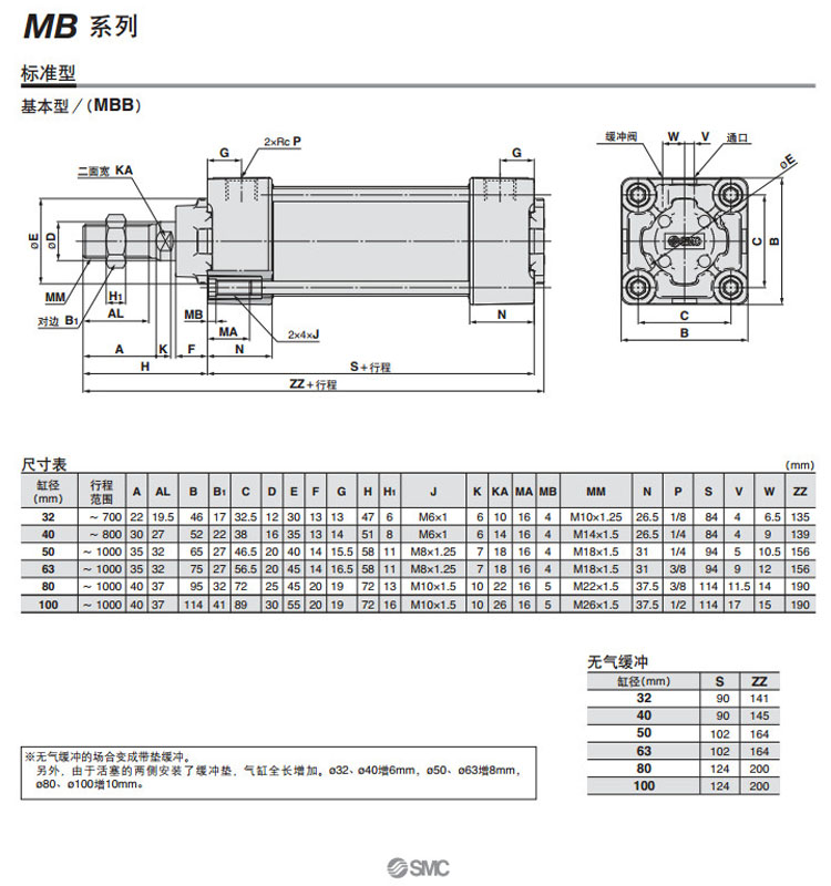 MBB32-25Z,MBL32-25Z,MBF32-25Z,MBG32-25Z,MBC32-25Z,MBD32-25Z,MBT32-25Z,SMC單桿型氣缸