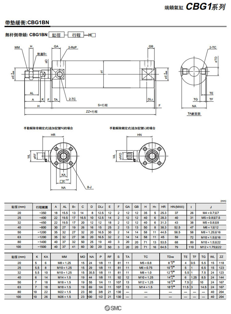CDBG1BQ80-300,CDBG1LQ80-300,CDBG1FQ80-300,CDBG1GQ80-300,CDBG1DQ80-300,SMC端鎖氣缸
