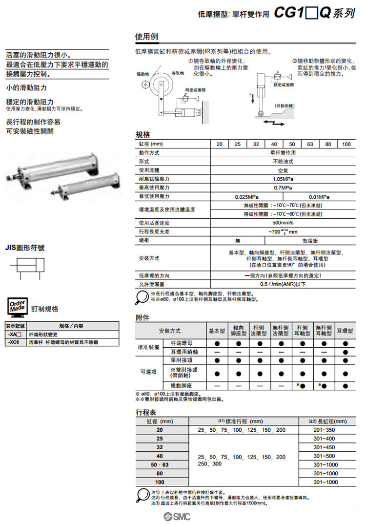 CDG1BQ100-300,CDG1LQ100-300,CDG1FQ100-300,CDG1GQ100-300,CDG1DQ100-300,SMC低摩擦型氣缸