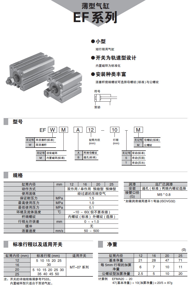 EFA12,EFWA12,EFMA12,EFWMA12,EFB12,EFWB12,EFMB12,EFWMB12,薄型氣缸
