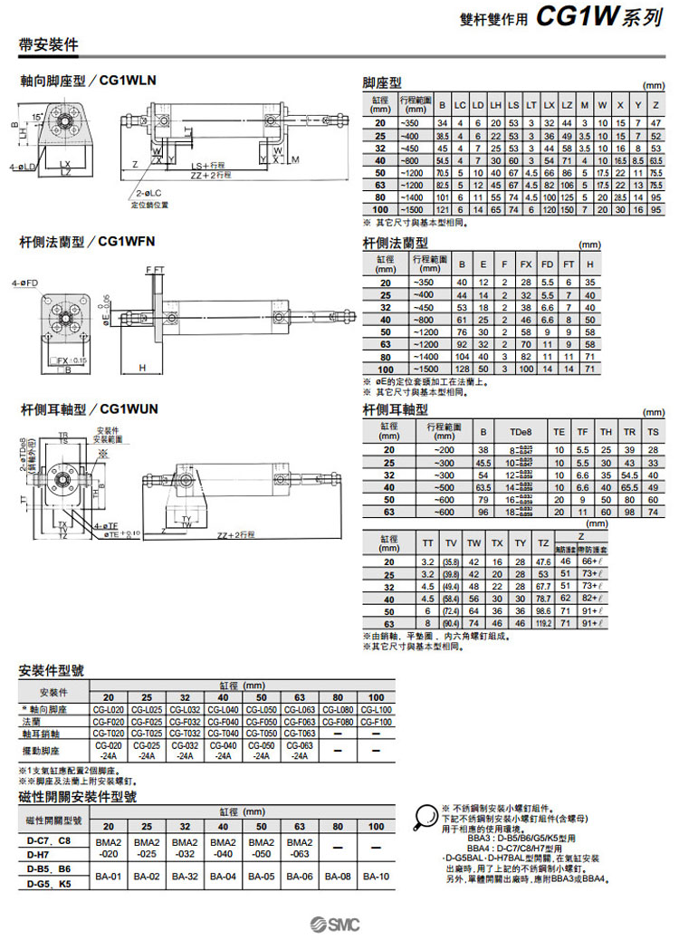 CG1WBN20-25,CG1WLN20-25,CDG1WFA20-25,CG1WUA20-25,CDG1WFN20-25,CG1WUN20-25,SMC雙桿雙作用氣缸