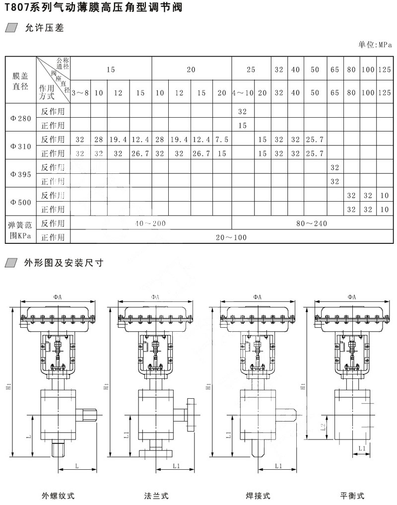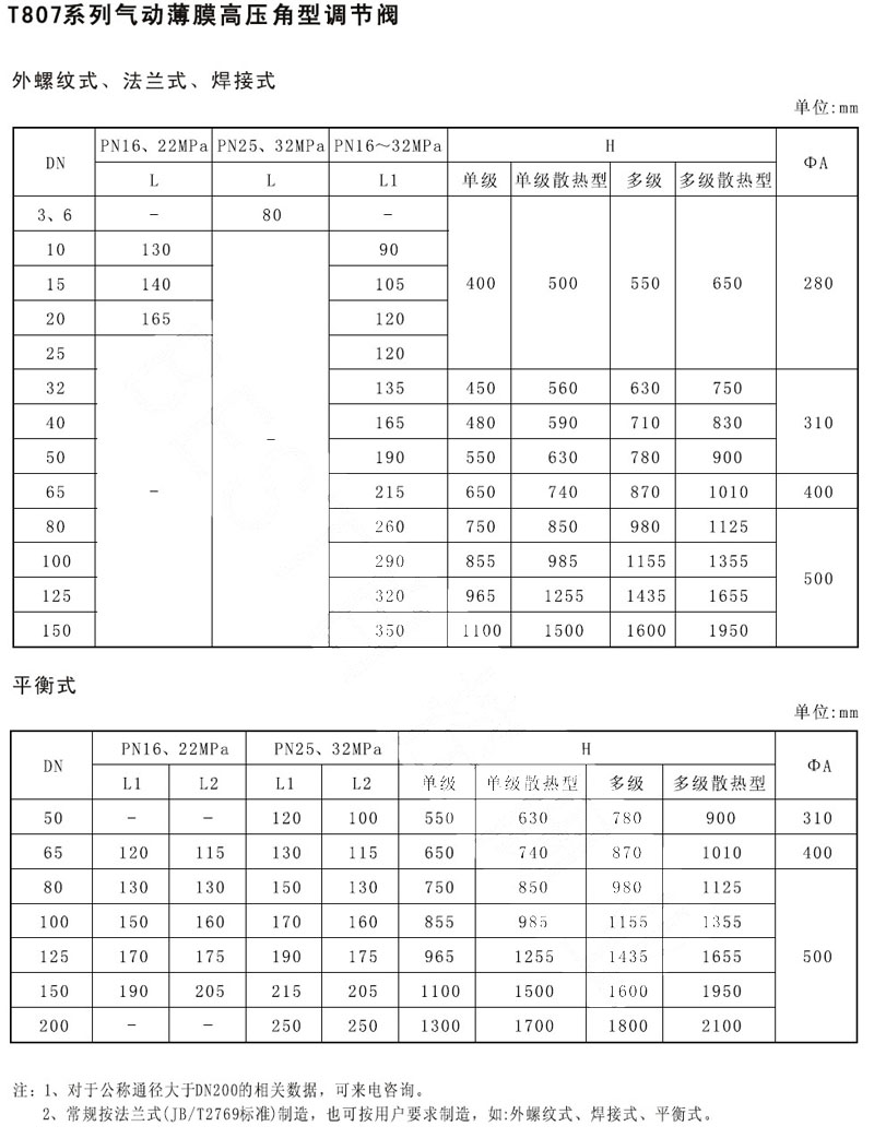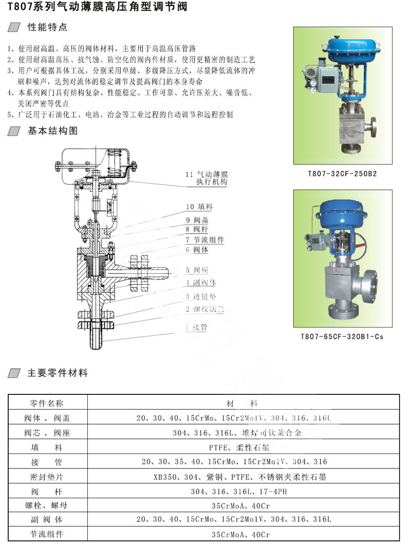 T807-16C,T807-16B,T807-22C,T807-22B,T807-25C,T807-32B,氣動(dòng)薄膜高壓角型調(diào)節(jié)閥