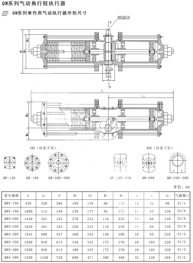 QWS-140,QWS-180,QWS-200,QWD-250,QWD-280,QWD-350,氣動(dòng)角行程執(zhí)行器