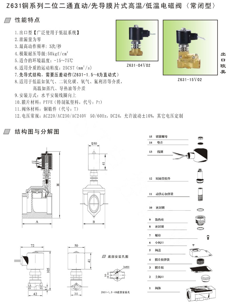 Z631-1.5,Z631-02,Z631-2.5,Z631-03,Z631-04,Z631-05,Z631-06,Z631-10,膜片式電磁閥