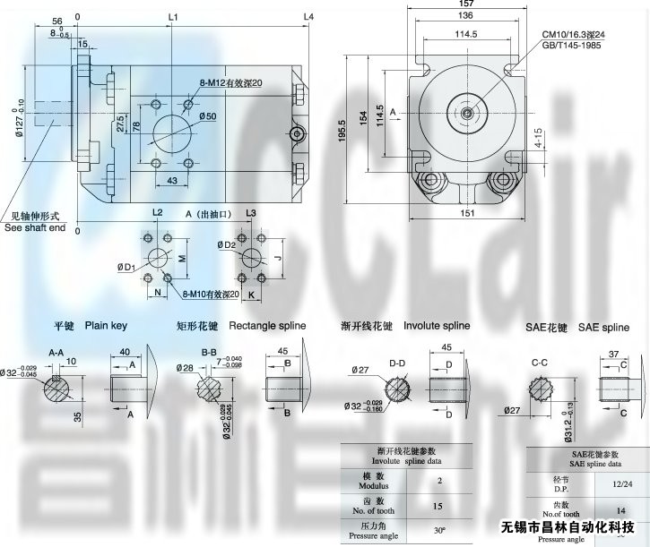 : SAE花鍵 H: 矩形花鍵 X: 漸開線花鍵