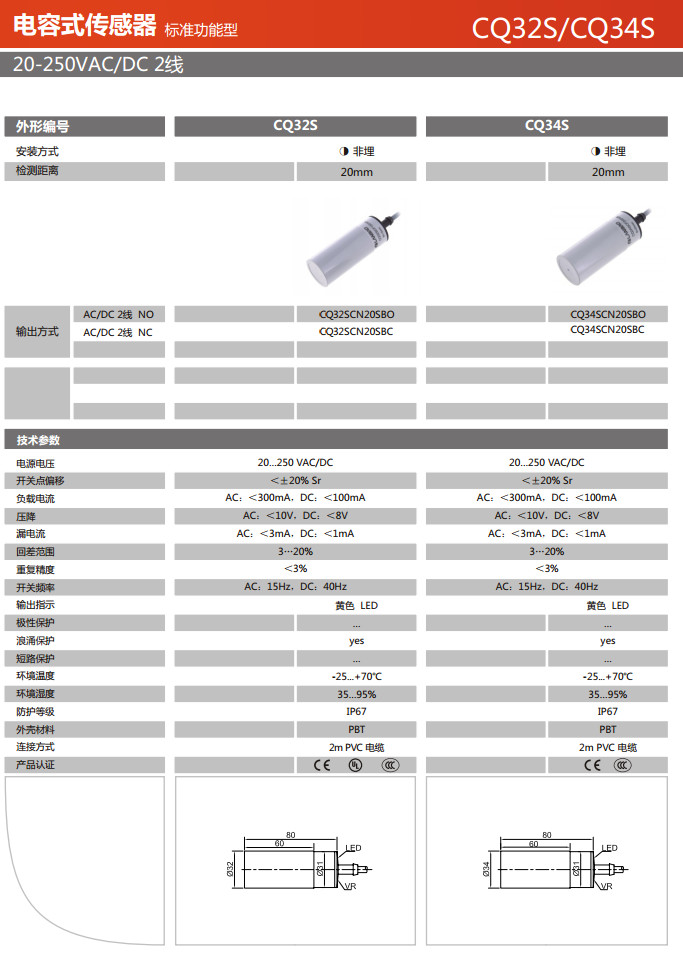 CQ32SCN20SBO,CQ32SCN20SBC,CQ34SCN20SBO,CQ34SCN20SBC,電容式傳感器