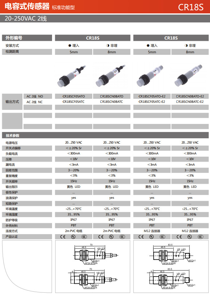 CR18SCF05ATO,CR18SCF05ATC,CR18SCN08ATO,CR18SCN08ATC,CR18SCF05ATO-E2,CR18SCF05ATC-E2,CR18SCN08ATO-E2,CR18SCN08ATC-E2,電容式傳感器
