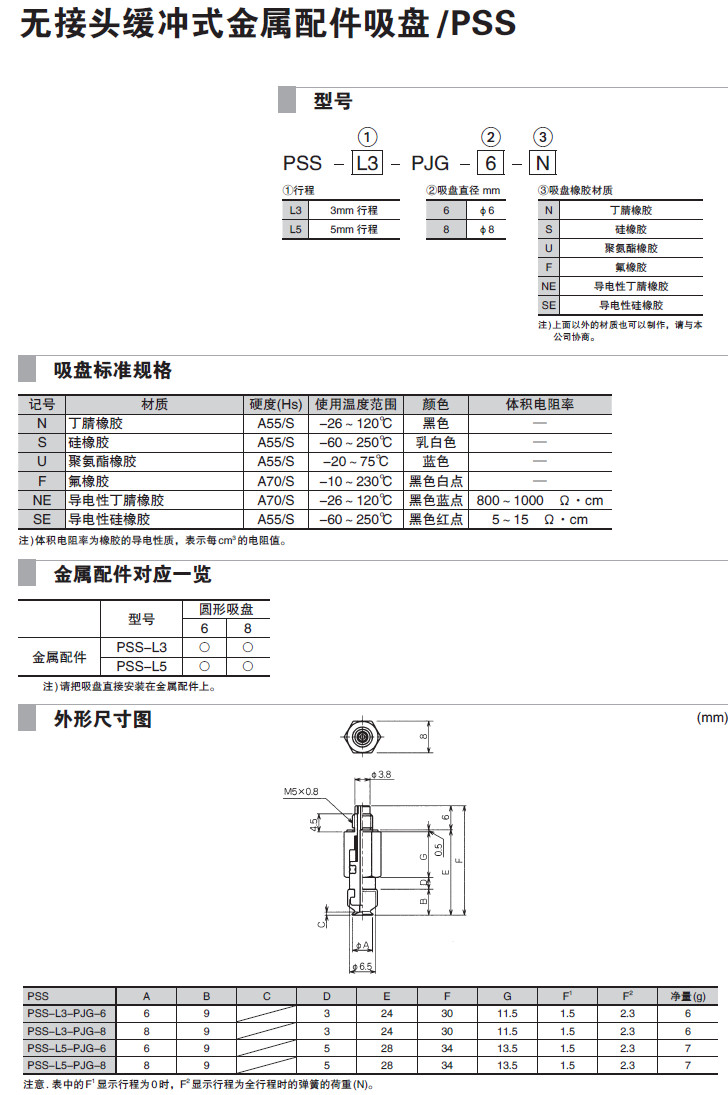 PSS-L3-PJG-6,PSS-L3-PJG-8,PSS-L5-PJG-6,PSS-L5-PJG-8,吸盤(pán)