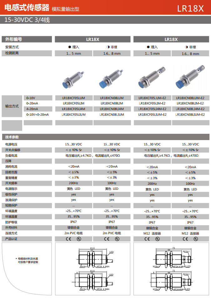 LR18XCF05LUM,LR18XCF05LIM,LR18XCF05LI4M,LR18XCF05LIUM,LR18XCN08LUM,LR18XCN08LIM,電感式傳感器