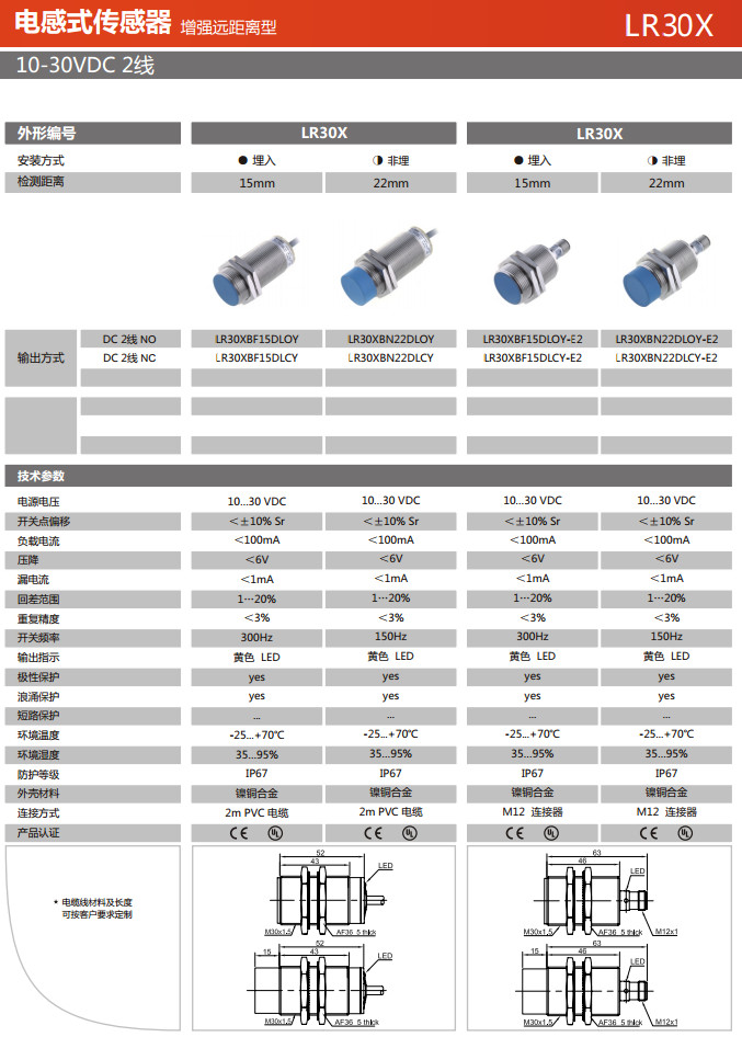 LR30XBF15DLOY,LR30XBF15DLCY,LR30XBN22DLOY,LR30XBN22DLCY,LR30XBF15DLOY-E2,電感式傳感器 |