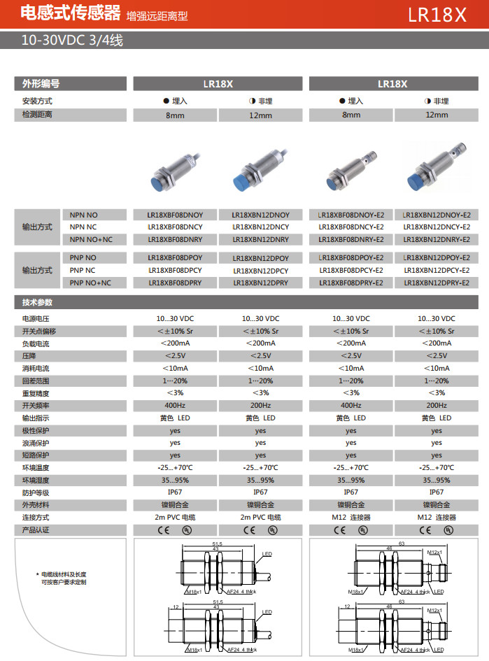LR18XBF08DNOY,LR18XBF08DNCY,LR18XBF08DNRY,LR18XBN12DNOY,LR18XBN12DNCY,LR18XBN12DNRY,電感式傳感器 |