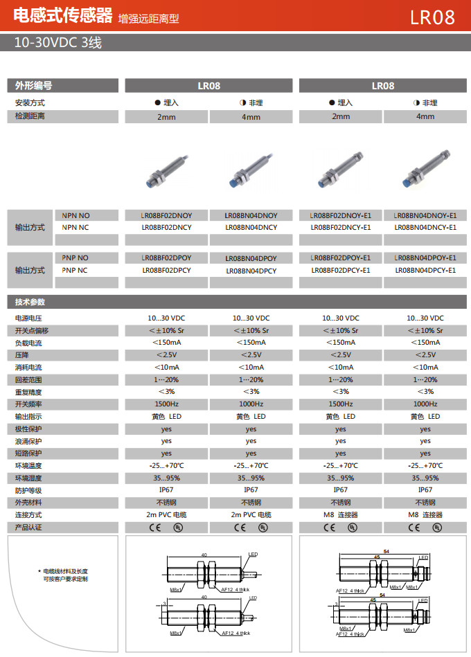 LR08BF02DNOY,LR08BF02DNCY,LR08BN04DNOY,LR08BN04DNCY,LR08BF02DNOY-E1,LR08BF02DNCY-E1,電感式傳感器