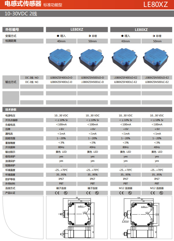 LE80XZSF40DLO-D,LE80XZSF40DLC-D,LE80XZSN50DLO-D,LE80XZSN50DLC-D,LE80XZSF40DLO-E2,電感式傳感器 |
