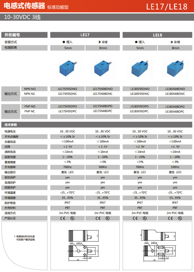 LE17SF05DNO,LE17SF05DNC,LE17SN08DNO,LE17SN08DNC,LE18SF05DNO,LE18SF05DNC,LE18SN08DNO,電感式傳感器 |