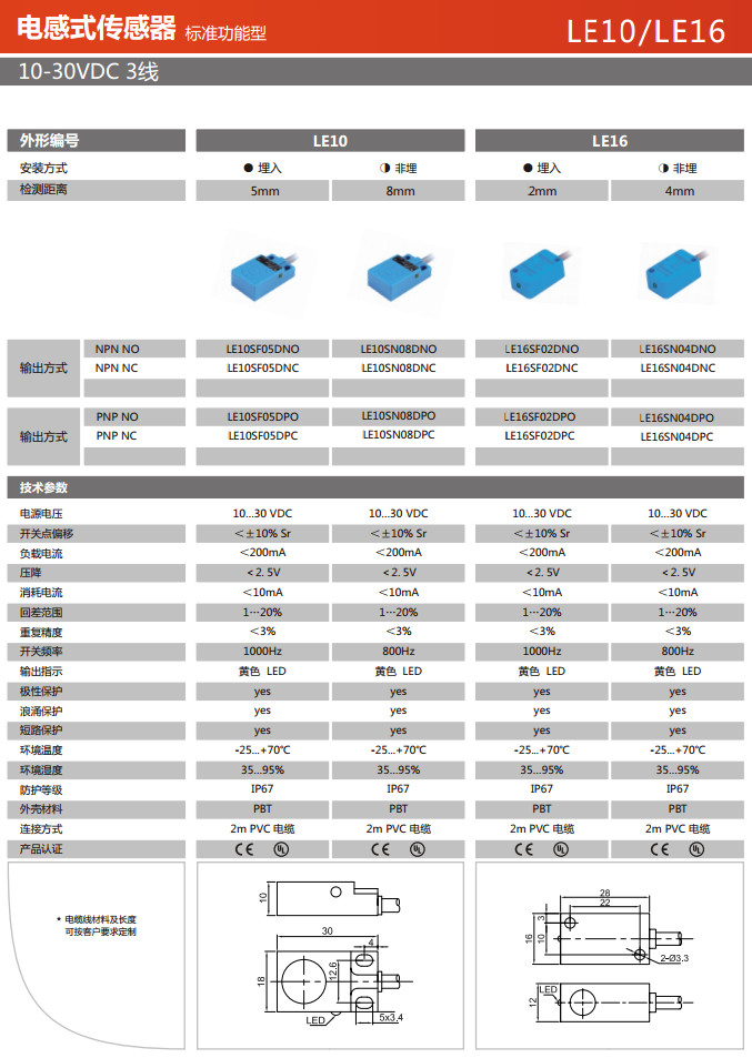 LE10SF05DNO,LE10SF05DNC,LE10SN08DNO,LE10SN08DNC,LE16SF02DNO,LE16SF02DNC,LE16SN04DNO,電感式傳感器