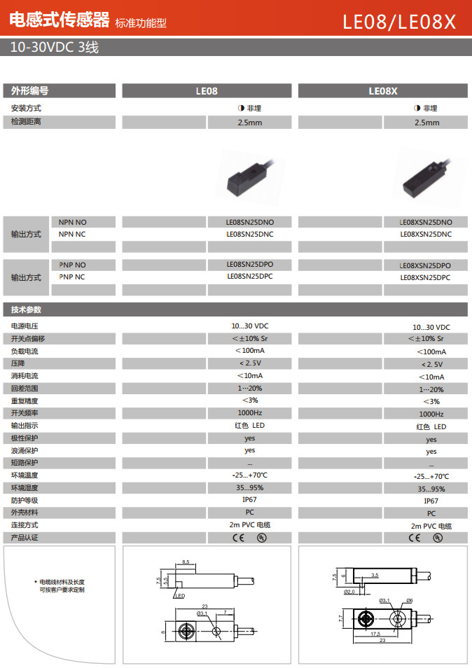 LE08SN25DNO,LE08SN25DNC,LE08XSN25DNO,LE08XSN25DNC,LE08SN25DPO,LE08SN25DPC,LE08XSN25DPO,LE08XSN25DPC,電感式傳感器