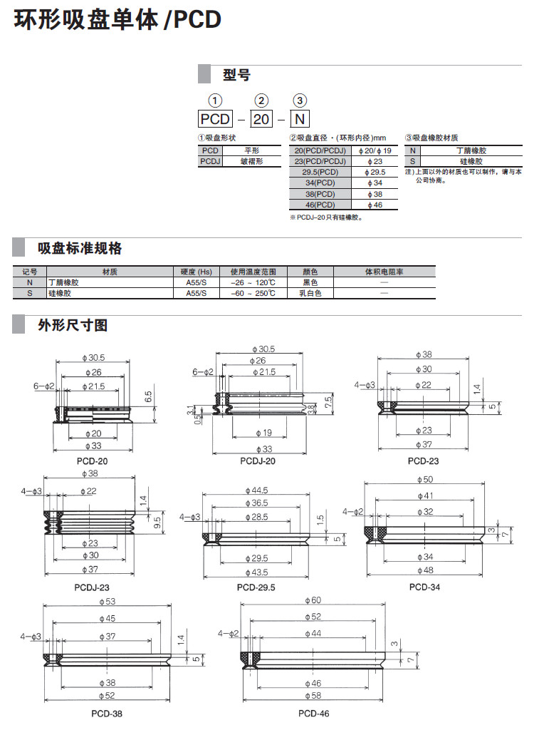 PCD-20,PCD-23,PCD-29.5,PCD-34,PCD-38,PCD-46,PCDJ-20,PCDJ-23,吸盤