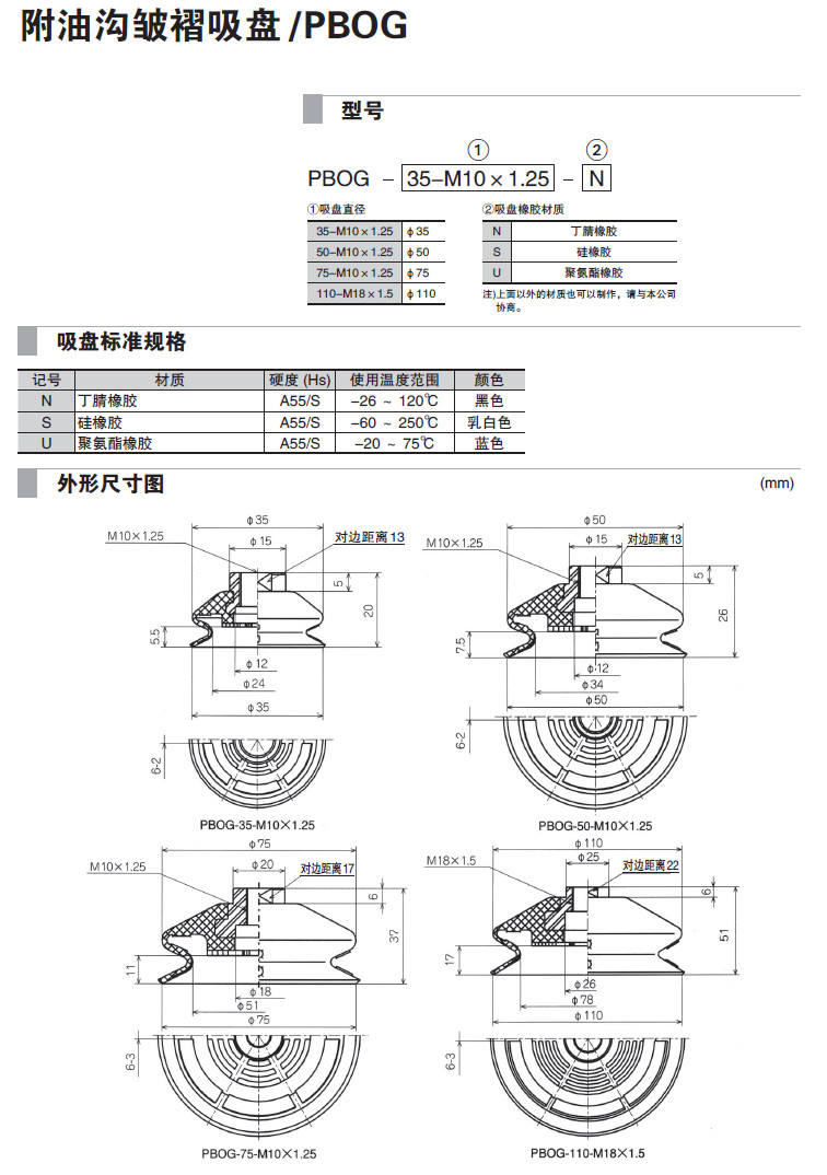 PBOG-35-M10×1.25,PBOG-50-M10×1.25,PBOG-75-M10×1.25,PBOG-110-M18×1.5,吸盤(pán)