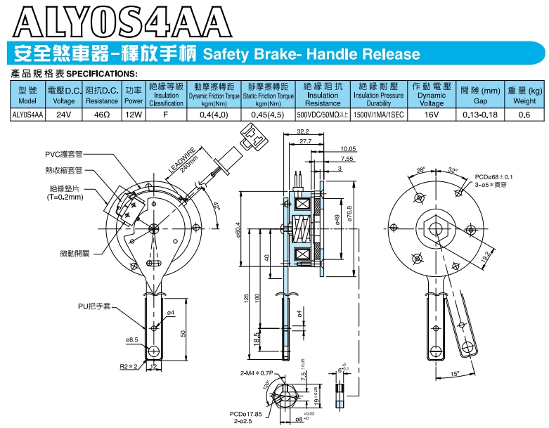 ALY0S4AA,安全剎車器附釋放手柄