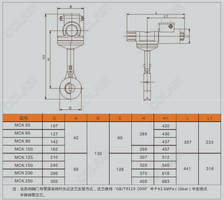 MCK50,MCK65,MCK80,MCK100,MCK125,MCK150,MCK200,MCK250,電磁脈沖蝶閥