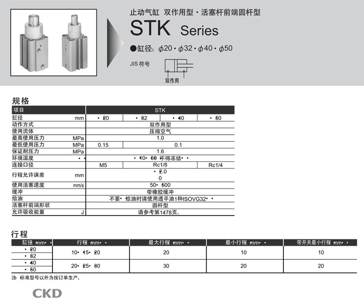 STK-20-10,STK-32-10,STK-40-20,STK-50-20,STK-20-15,STK-40-25,STK-50-30,CKD止動(dòng)氣缸