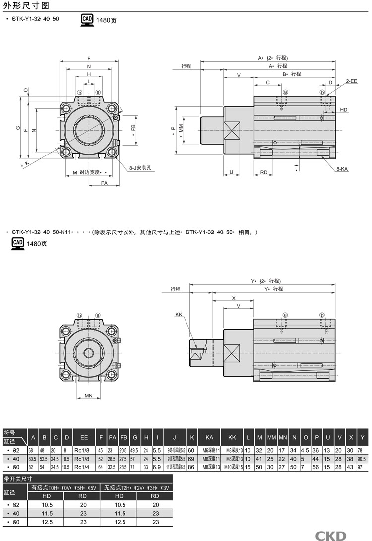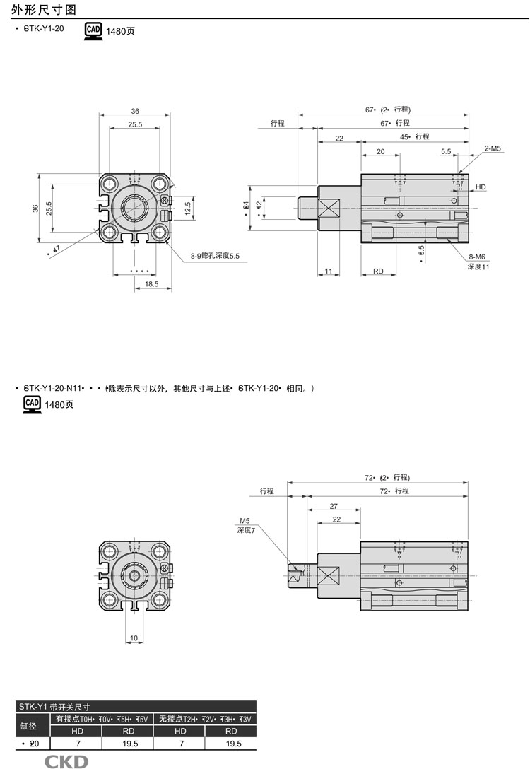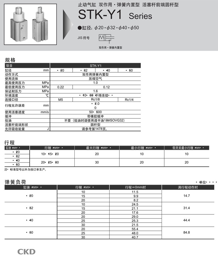 STK-Y1-20-10,STK-Y1-32-10,STK-Y1-40-20,STK-Y1-50-20,STK-Y1-20-15,STK-Y1-40-25,CKD止動氣缸
