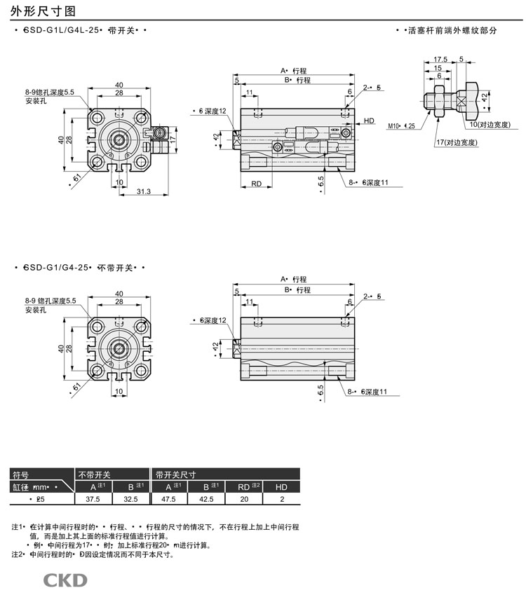 SSD-G1-25-5,SSD-G1L-25-25,SSD-G4-25-5,SSD-G4L-25-40,SSD-G4L-100-50,CKD超緊湊型氣缸