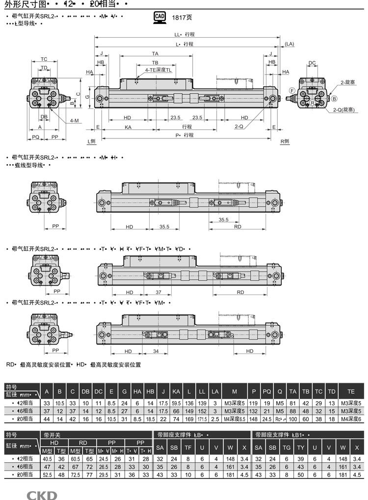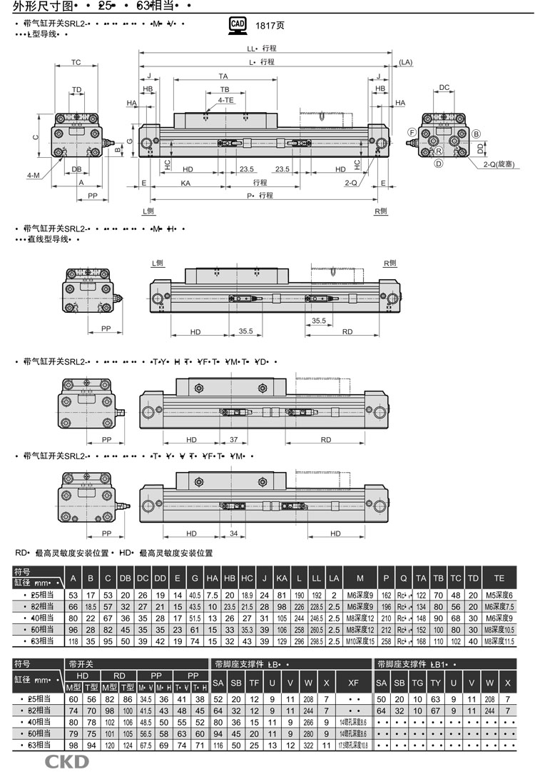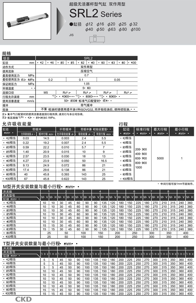 SRL2-LB1-100B-200,SRL2-LB1-100B-300,SRL2-LB1-100B-400,SRL2-LB1-100B-500,SRL2-LB1-100B-600,CKD超級(jí)無活塞桿型氣缸
