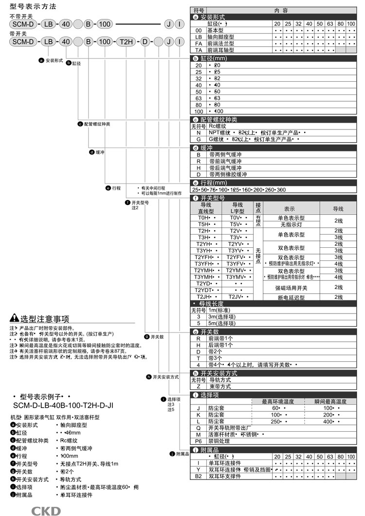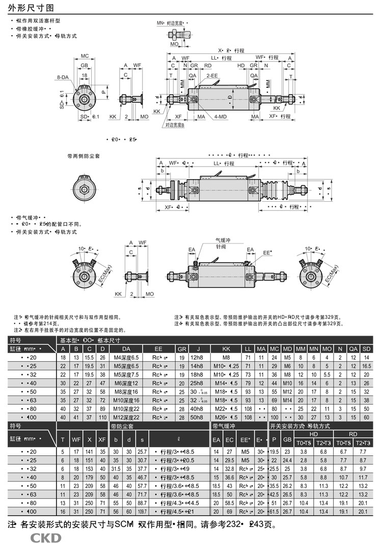 SCM-D-LB-100B-250,SCM-D-LB-100B-300,SCM-D-FA-100B-25,SCM-D-FA-100B-50,SCM-D-FA-100B-75,CKD圓形緊湊氣缸
