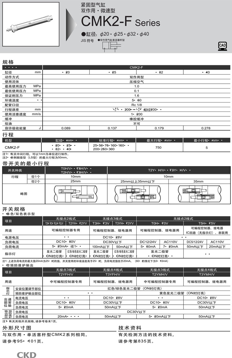 CMK2-F-00-20-25,CMK2-F-00-20-50,CMK2-F-00-20-75,CMK2-F-00-20-100,CMK2-F-00-20-150,CKD緊固型氣缸