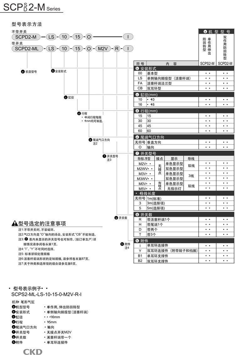 SCPS2-M-00,SCPS2-M-LS,SCPS2-M-FA,SCPS2-M-CB,SCPS2-ML-00,SCPS2-ML-LS,SCPS2-ML-FA,SCPS2-ML-CB,CKD筆型氣缸