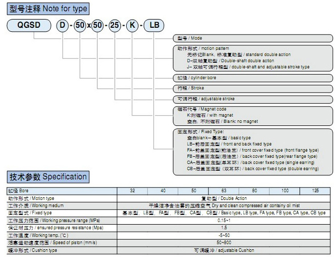 QGSD32,QGSD40,QGSD50,QGSD63,QGSD80,QGSD100,QGSD125,QGSD32×50-25, |
