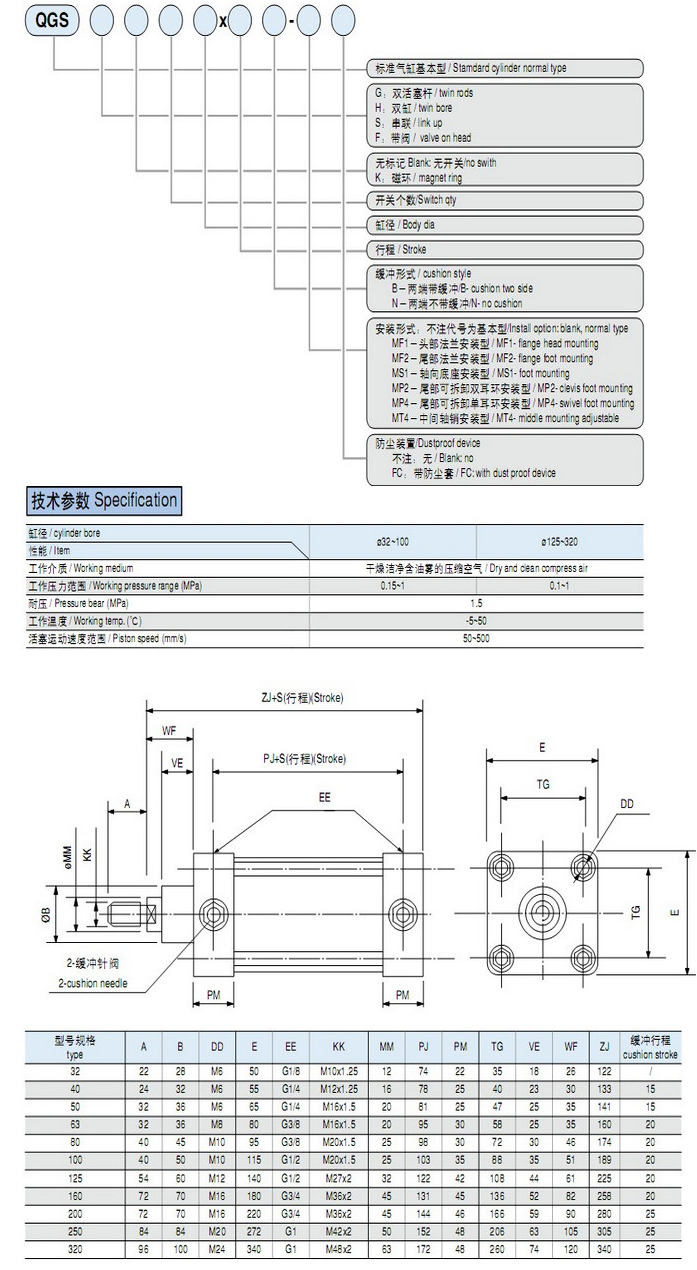 QGSH320×800,QGSH320×850,QGSH320×900,QGSH320×950,QGSH320×1000,QGSH320×1100,QGSH320×1200,標(biāo)準(zhǔn)氣缸