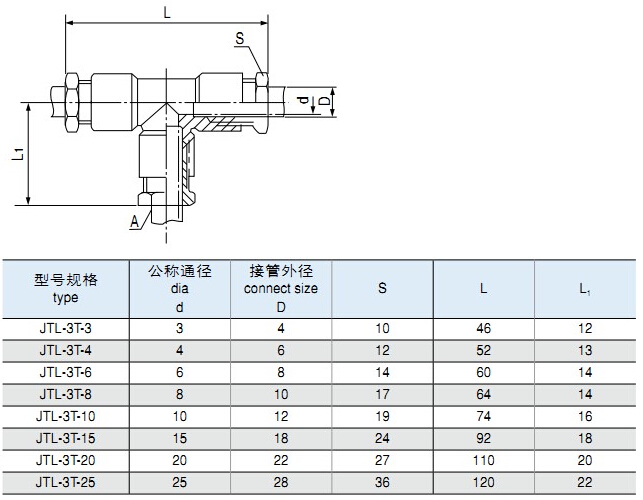 JTL-3T-3,JTL-3T-4,JTL-3T-6,JTL-3T-8,JTL-3T-10,JTL-3T-15,JTL-3T-20,JTL-3T-25,卡套式三通管接頭 |