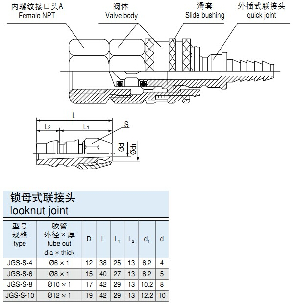JGS-S-4,JGS-S-6,JGS-S-8,JGS-S-10,鎖母式聯(lián)接頭