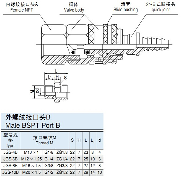 JGS-4B,JGS-6B,JGS-8B,JGS-10B,高性能快速接頭