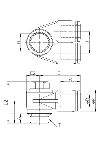 | Model | ∅D | ∅P | T | L1 | L2 | J | E1 | E2 | A | B | H(Hex) | ORIFICE | WEIGHT(g) | EA(BOX) |