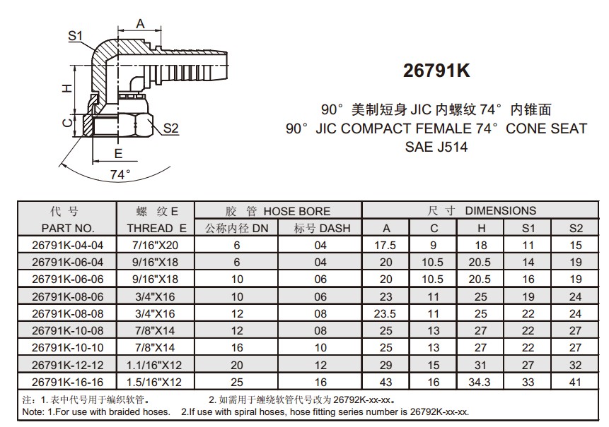 26791K-04-04,26791K-06-04,26791K-06-06,26791K-08-06,26791K-08-08,26791K-10-08,扣壓式軟管接頭