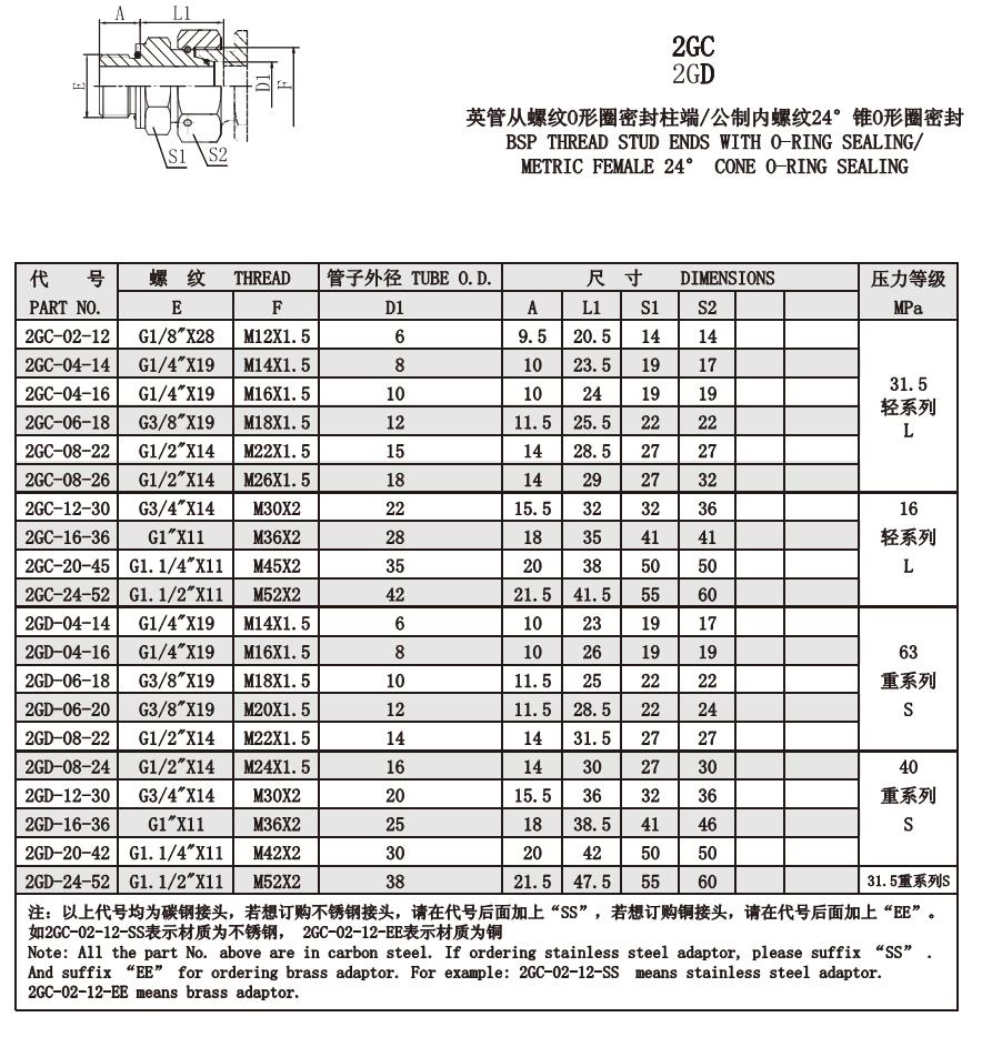 2GC-02-12,2GC-04-14,2GC-06-18,2GC-08-22,2GD-12-30,2GD-16-36,2GC-20-42,2GC-24-52,英管螺紋鉸接接頭