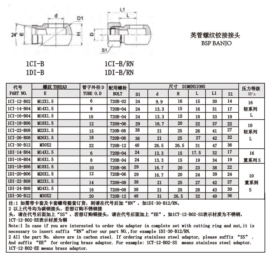 1CI-12-B02,1CI-14-B04,1CI-16-B04,1DI-22-B08,1DI-24-B08,1DI-30-B12,英管螺紋鉸接接頭