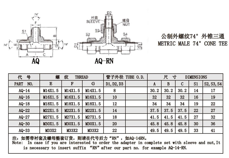 AQ-14,AQ-16,AQ-18,AQ-22,AQ-27,AQ-30,AQ-33,錐面密封接頭