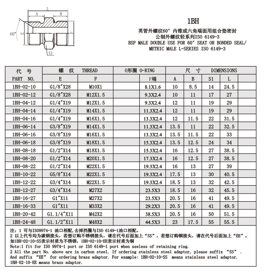 1BH-02-10,1BH-02-12,1BH-04-12,1BH-04-14,1BH-04-16,1BH-06-14,1BH-06-16,錐面密封接頭